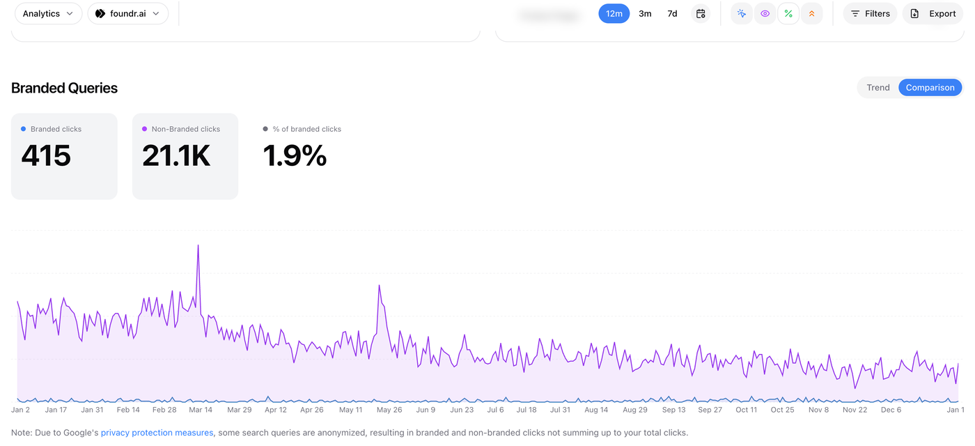A high volume of branded search queries for your site indicates that your brand is growing its popularity. Additionally, non-branded queries indicate how well your site performs in the SERP for general topics.